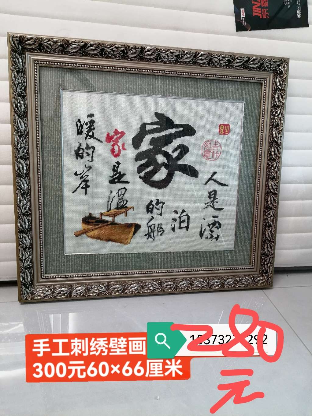 ⑤手工一针一线绣的壁画,框磕了一点不严重280处理