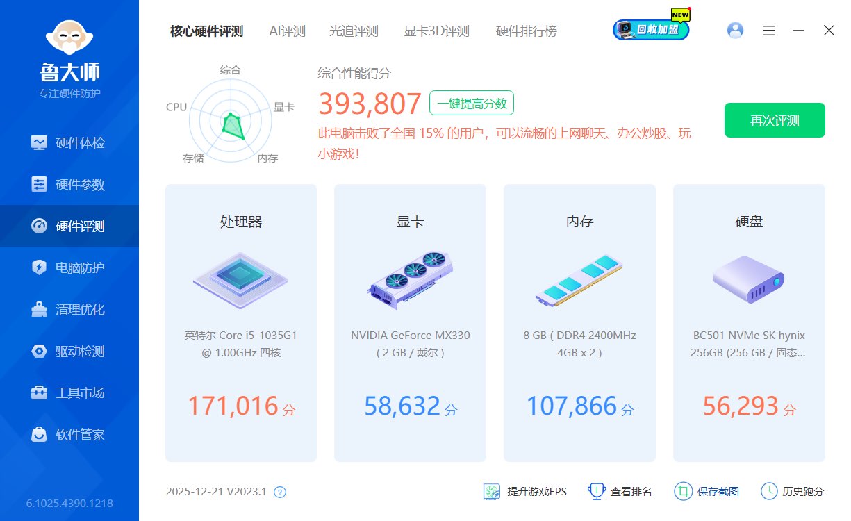 鲁大师跑分39万加性能强悍,作图游戏办公均可。
